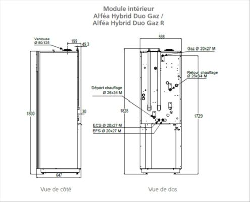 La pompe à chaleur Aérothermie Inverter Atlantic Alféa Hybrid Duo est fournie avec relève de chaudière fioul intégrée. Lorsque le climat est propice à la pompe à chaleur cette dernière est chargée de la production principale. La combinaison pompe à chaleur et gaz est . PAC avec appoint gaz condensation intégré.